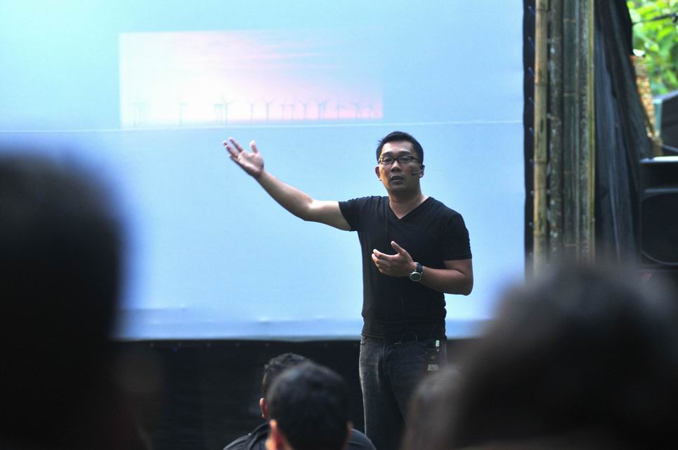 Dalam kesempatan kali ini, beliau memaparkan foto-foto arsitektur yang memiliki tema tentang keselarasan antara ruang huni dengan alam. Foto-foto tersebut menampilkan tentang berbagai macam bangunan indah baik di dalam ataupun di luar negeri, yang dapat mempengaruhi psikologi bagi manusia yang melihatnya. Menurutnya, manusia modern saat ini banyak terjangkit fenomena “urban stress” dimana mereka kurang bersosialisasi dengan lingkungan sekitar karena terlalu lama menghabiskan waktu di dalam ruangan. Untuk itu diperlukan yang namanya ruang publik dengan area hijau yang ditanami pepohonan sehingga kita akan mendapatkan kesegaran baru yang membuat nyaman dan tenang. Ridwan kamil telah menjelajah sekitar 100 kota di seluruh dunia. Ia melihat bahwa di kota-kota dunia seperti london, pemerintahnya cukup peduli untuk membangun ruang publik yang dapat dinikmati oleh setiap warganya ketimbang membangun jalan tol.