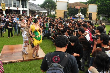Obyek foto yaitu para model yang mengenakan busana ramah lingkungan dengan suasana festival Thanks to Nature.